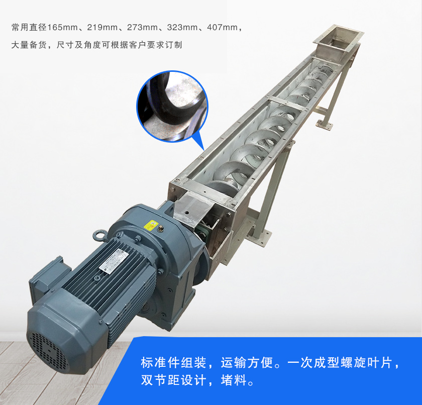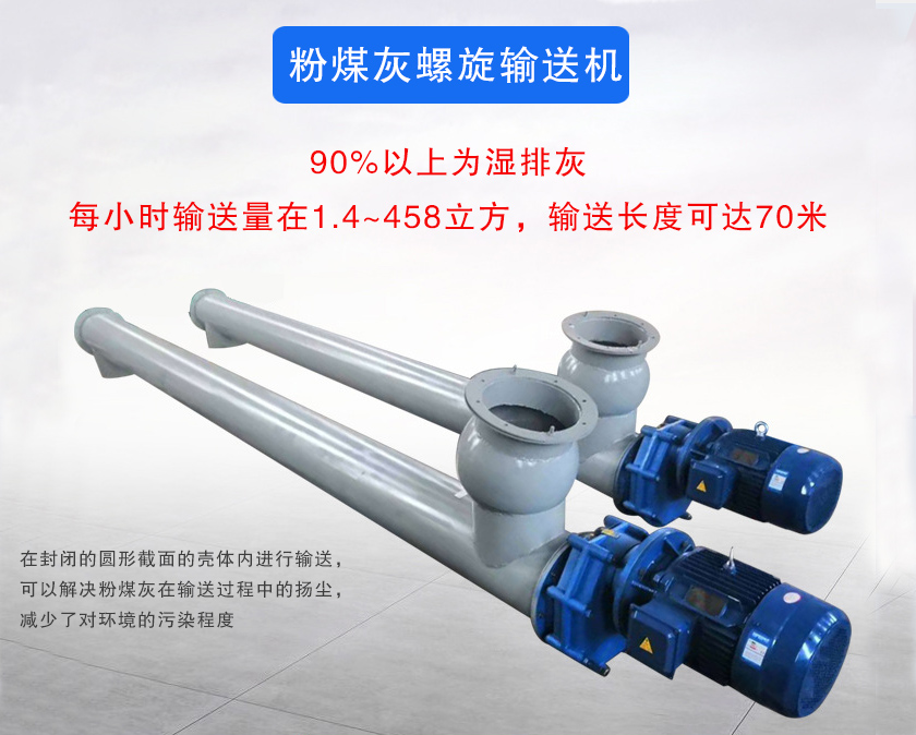 粉煤灰螺旋輸送機常用直徑有165mm、219mm、273mm、323mm、407mm,可選萬向球連接以及軟布袋連接兩種連接方式,使安裝調節轉向方便,連接更嚴密。密封性好,能防止粉塵污染,可根據用戶輸送工藝水平或傾斜輸送,組合靈活,可與多種設備配套使用。