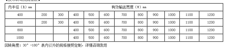 1、轉彎皮帶機結構形式有30度轉彎皮帶機、45度轉彎皮帶機、90度轉彎皮帶機、180度轉彎皮帶機, 能滿足各種轉彎輸送的工藝要求。