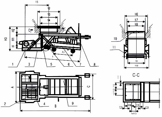 10底板有立向筋板,并用三道通長托輥支承,保證了底板本身剛度,消除了現有往復式給料機底板工作中彎曲變形的弊病。