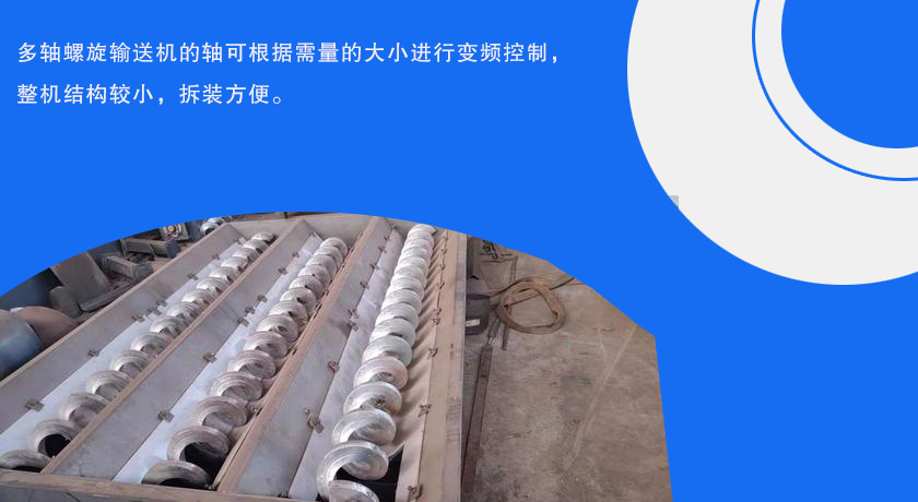 4、多軸螺旋輸送機的軸可根據需量的大小進行變頻控制,整機結構較小,拆裝方便。