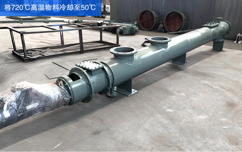 3.筒體長度是降溫關(guān)鍵:水冷螺旋輸送機輸送的物料一般為剛?cè)紵奈锪匣蚴潜旧砭途哂懈邷氐奈锪希栽谶\輸過程中需要一定的時間。筒體長度越長,冷卻降溫效果越好。