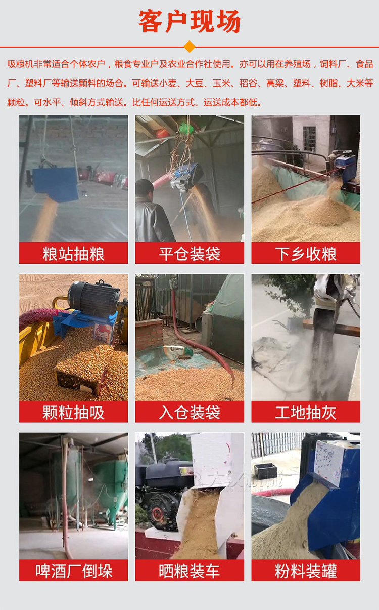 吸糧機可水平、斜向、垂直輸送物料,單機獨立完成輸送任務。