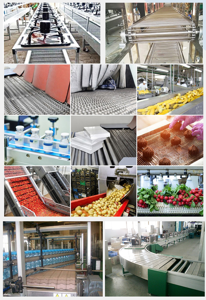 4、鏈板采用不銹鋼和工程塑料制成。用戶可根據輸送物料和工藝要求選擇合適的物料。