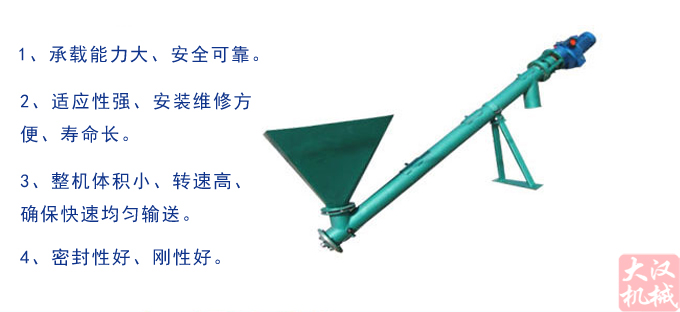 管式螺旋輸送機是利用旋轉的螺旋將被輸送的物料沿固定的機殼內推移完成輸送工作的。頭部及尾部軸承移至殼體外,吊軸承采用滑動軸承設有防塵密封裝置,軸瓦一般采用粉末冶金,輸送水泥采用毛氈軸瓦,吊軸和螺旋軸采用滑塊連接。