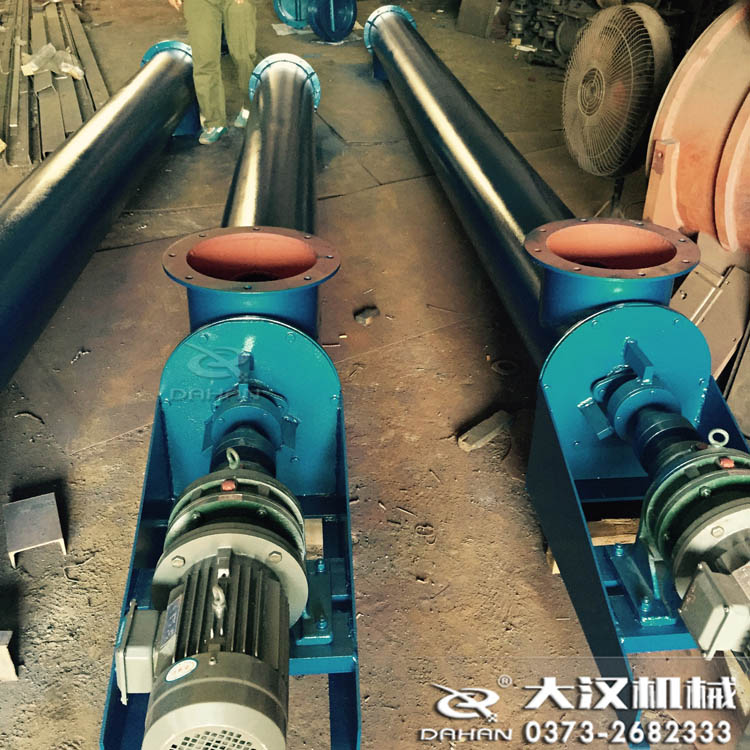螺旋輸送機螺旋面的形式有實體螺旋(S制法)和帶式螺旋(D制法)兩種。各螺旋軸之間采用法蘭式聯接, 保證了聯接軸的互換性,便于維修。 螺旋輸送機機蓋為瓦片式并用蓋扣夾緊在機殼上,若需改進密封性能,用戶可自行在機蓋與機殼間加防水粗帆布。 螺旋輸送機進、出料裝置有進料口,方型出料口,手推式出料口,齒條式出料口四種,由用戶在使用現場在機體上開口焊接。布置螺旋輸送機進、出料口位置時應注意保證料口至端部的距離,同時避免料口與吊軸承加油杯、機殼聯接法蘭、底座等相碰。