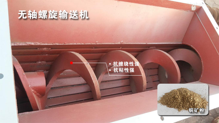 無(wú)軸螺旋輸送機(jī)適用于輸送的物料:污泥、生活垃圾、銅礦粉、格柵渣等有粘性,纏繞性物料和塊狀物料,正是因?yàn)闊o(wú)軸螺旋輸送機(jī)無(wú)中心軸的設(shè)計(jì)對(duì)這些物料具有很大的優(yōu)勢(shì)。