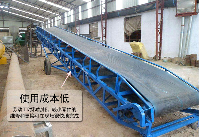 3)使用成本低——皮帶上料機(jī)系統(tǒng)運(yùn)送每噸散狀物料所需的勞動(dòng)工時(shí)和能耗,較小零件的維修和更換可在現(xiàn)場(chǎng)很快地完成,維修費(fèi)用低。