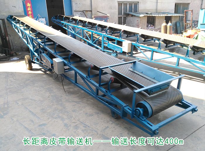 皮帶輸送機在各類的輸送輸送設備中明顯的就是可用于長距離的輸送!輸送長度非常長,經實驗認證,我們大漢機械所生產的皮帶輸送機長可達400m。