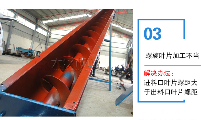 解決辦法:對于較長的螺旋輸送機可采取逐漸增大的螺距,防止輸送機在喂料處被物料淹沒而產生的過負荷,也可防止氣化后物料從料倉中向外涌出。