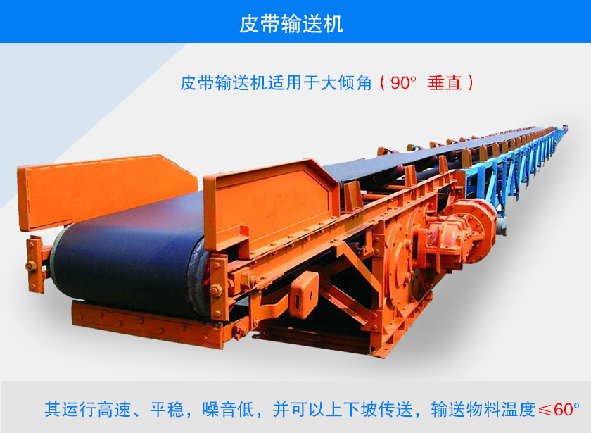 皮帶輸送機(jī)適用于大傾角(90°垂直)連續(xù)或間歇運(yùn)動(dòng)來輸送100KG以下的物品或粉狀、顆狀物品,其運(yùn)行高速、平穩(wěn),噪音低,并可以上下坡傳送,輸送物料溫度≤60°。帶式輸送機(jī)用于井下采礦工程、露天采礦、大型自卸船、鋼廠的高爐上料等場合。