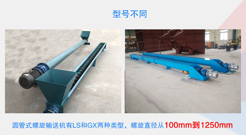 圓管式螺旋輸送機有LS和GX兩種類型,螺旋直徑從100mm到1250mm,不同型號對應的圓管式螺旋輸送機輸送量不同,而且在耗材上也是存在變化的。圓管螺旋輸送機選型越大,對應的耗材量就越多,市場報價自然就會越高,在材質,設計等方面相同情況下,每相差一個型號,圓管螺旋輸送機價格就會增高500~1000元左右,所以用戶需要結合自身的產量需求來選擇合適的型號。