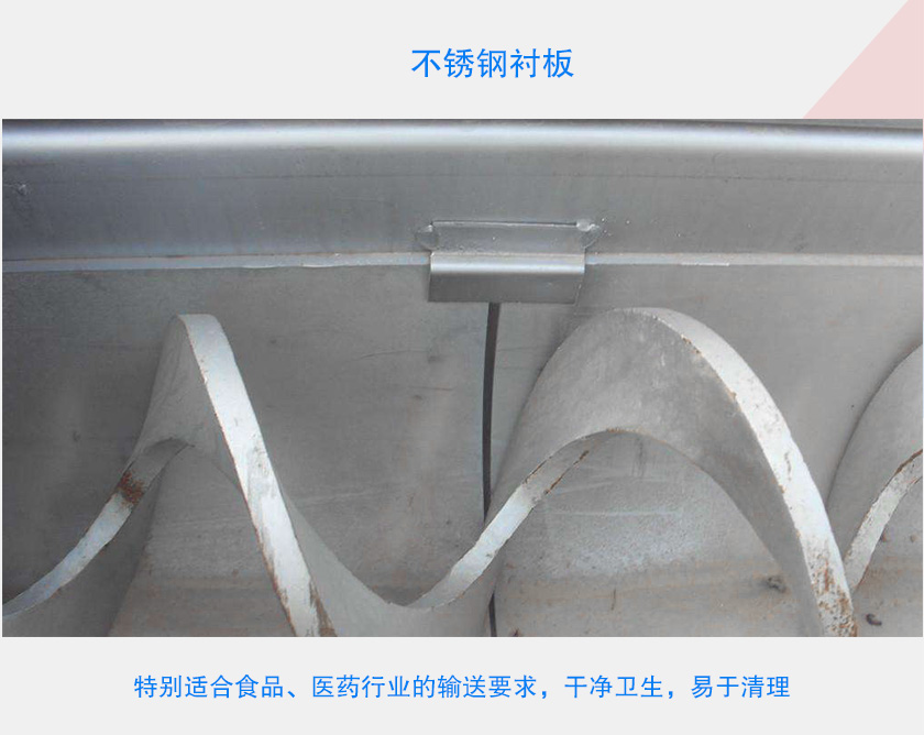 以上是對無軸螺旋輸送機襯板的介紹,在客戶使用當中,可以根據情況可自行更換襯板,螺旋輸送機襯板材質可依據用戶需要及輸送物料來選擇。