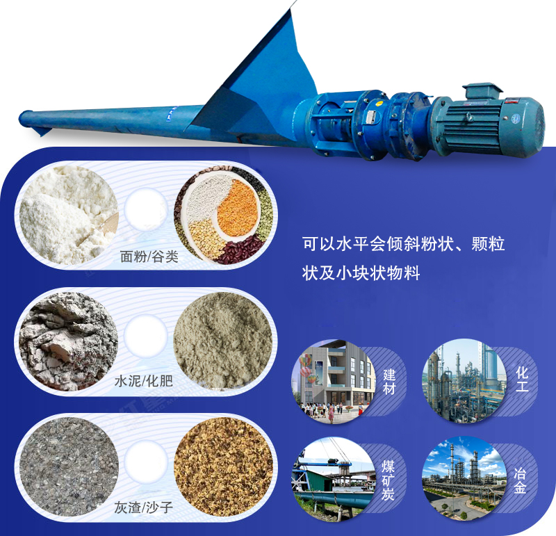 管式螺旋輸送機(jī)可以水平會(huì)傾斜粉狀、顆粒狀及小塊狀物料,如輸送面粉、谷類、水泥、化肥、灰渣、沙子、石子、煤粉、小塊煤等物料。