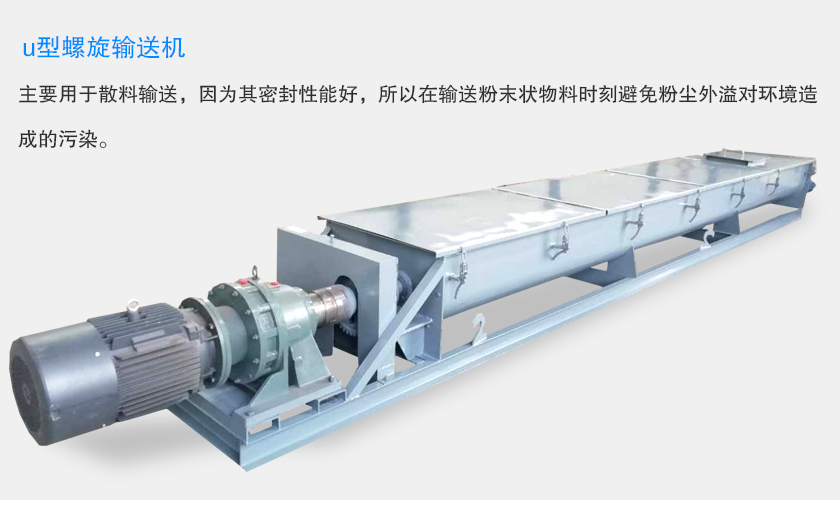 u型螺旋輸送機(jī)主要用于散料輸送,因?yàn)槠涿芊庑阅芎茫栽谳斔头勰钗锪蠒r(shí)刻避免粉塵外溢對(duì)環(huán)境造成的污染。