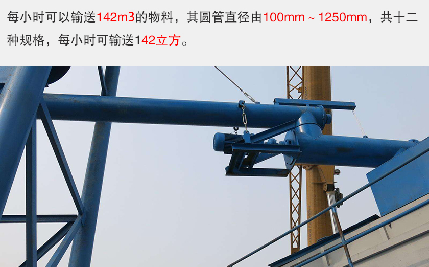 管式螺旋輸送機(jī)每小時(shí)可以輸送142m³的物料,其圓管直徑由100mm~1250mm,共十二種規(guī)格,每小時(shí)可輸送142立方。