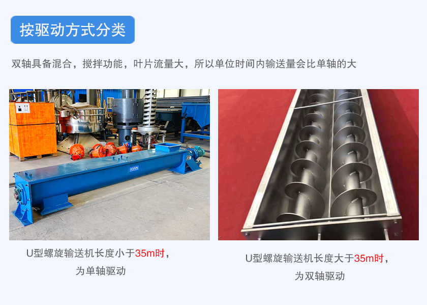 2、U型螺旋輸送機長度大于35m時,為雙軸驅動。