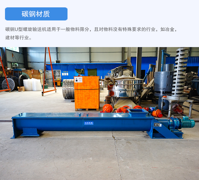 碳鋼U型螺旋輸送機適用于一般物料篩分,且對物料沒有特殊要求的行業,如冶金,建材等行業。